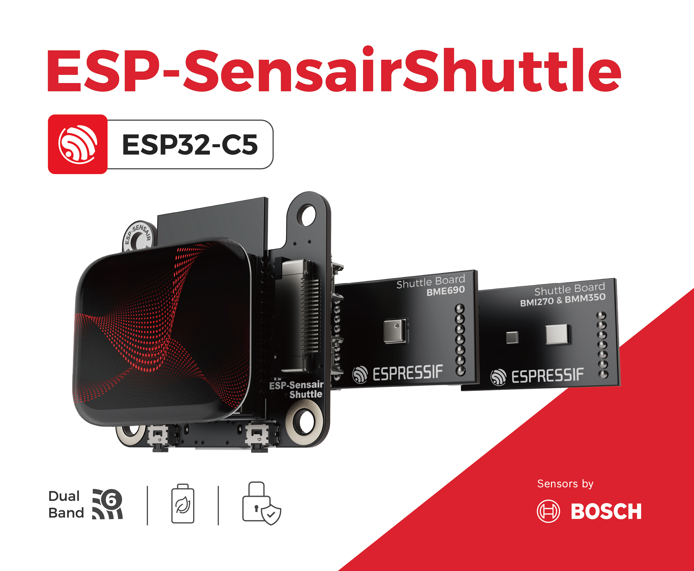 The joint solution combines Bosch Sensortec’s high-performance MEMS sensors and sensor algorithms with Espressif’s ESP32-C5 dual-band Wi-Fi 6 SoC, which serves as the central controller. The collaboration leverages a range of Bosch Sensortec MEMS sensors — including the BME690 environmental gas sensor, BMI270 motion IMU, and BMM350 magnetometer— to enable precise multi-dimensional sensing with low power consumption. This integrated platform enables developers to build flexible, multimodal interaction solutions with efficient sensor fusion and real-time responsiveness.