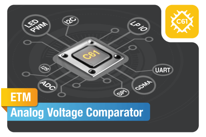 ESP32-C61 encompasses standard microcontroller peripherals, such as I2C, I2S, SPI, UART, LED PWM, ADC, GPIO, LP IO, Timers, and GDMA. Specialized peripherals include the Event Task Matrix (ETM) for automation-triggered tasks and the Analog Voltage Comparator for easy zero-crossing detection.