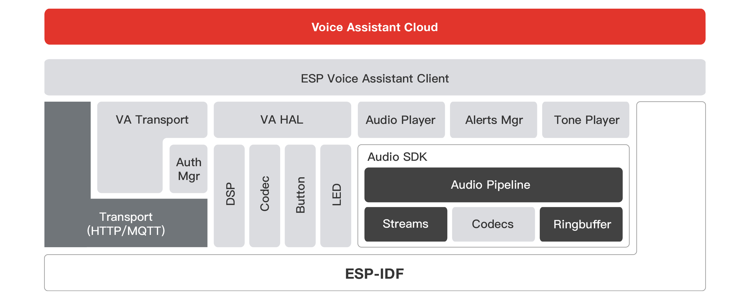 Espressif’s VA SDK provides production-ready example applications that include full AVS functionality, including music service support. Apart from conversing with the user, Alexa lets you play music from a variety of music streaming services. Alexa also helps you manage to-do lists and allows for voice-assisted shopping from Amazon.